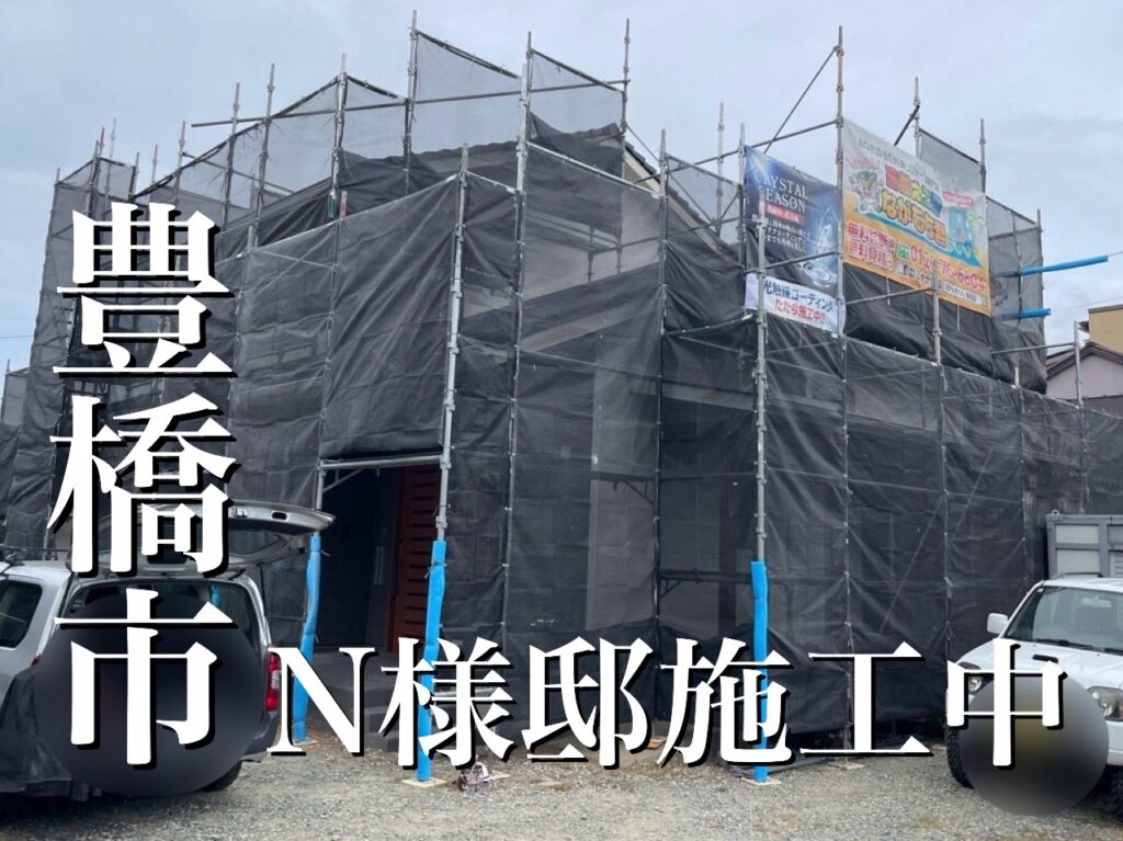 ダイアリーをご覧いただき、ありがとうございます!只今、豊橋市で外壁塗装工事施工中のお家をご紹介します。