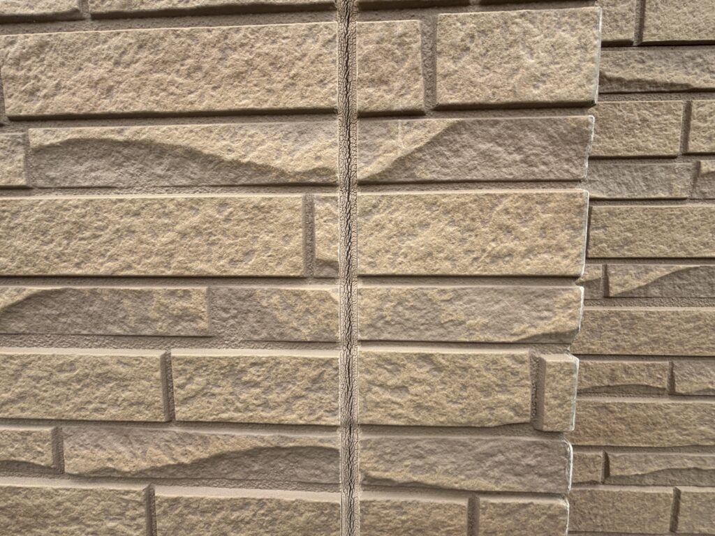 築12年の玉善さんのお家です。今回が初めての外壁塗装でした。窯業系サイディングの外壁塗装で、目地のコーキングも硬化や破断が起きておりましたのでしっかりと全面打替え補修を。サイディングは難付着サイディング(親水セラ)のため、色あせはさほど起きておりませんでした。下塗り材の選定をしっかりと行い、できる限り長持ちさせて塗装頻度を減らしたい、そしてレンガ調の柄に代わる模様が欲しいとのご要望で、無機多彩模様塗装である「ネオフレッシュティアラVM」にての施工をご提案いたしました。