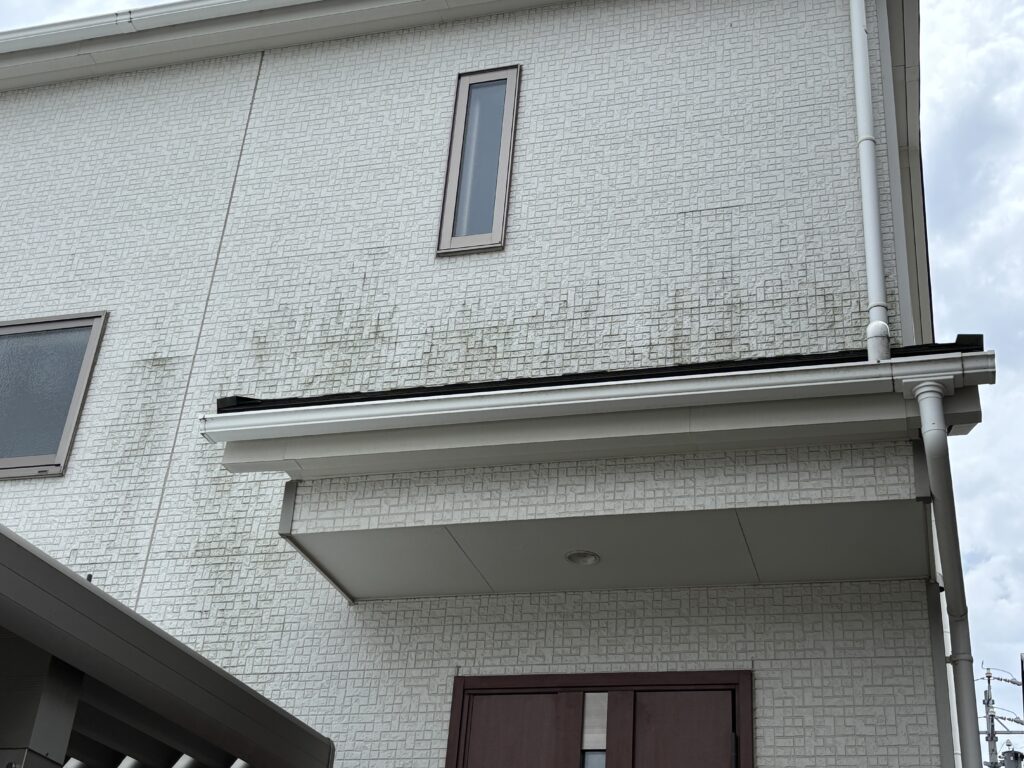 目地のコーキングの劣化(主に界面剥離と硬化)が目立ち、北面やバルコニー内壁の黒カビや苔も気になるとのことで、劣化具合からも塗装を考えておられました。また、金属サイディングでの上張りと塗装との比較についてもご説明をさせていただきました。